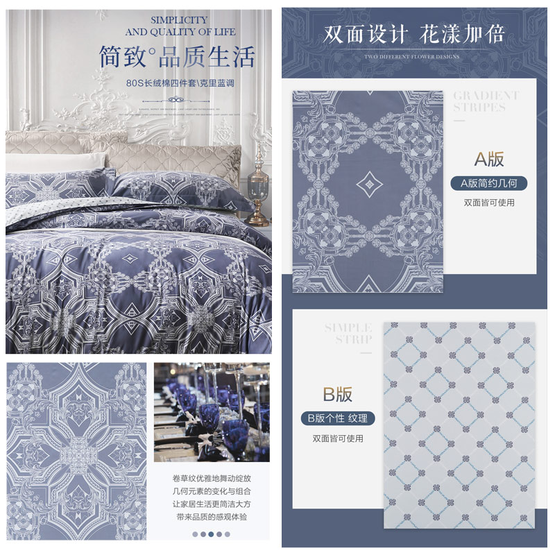 克里蓝调 床单四件套(被套1件床单1件枕套2件)(适合1.8米床)【长绒棉/蓝】 |