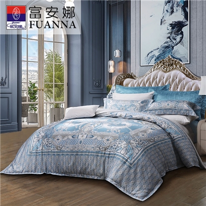 伊亚 床单四件套(被套1件床单1件枕套2件)(适合1.8米床)【100支长绒棉/蓝】 |