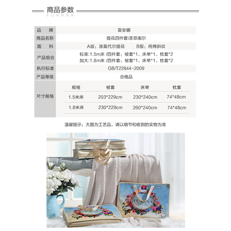 圣菲南尔 床单四件套(被套1件床单1件枕套2件)(适合1.5米床)【A版:涤莫代尔提花;B版:纯棉/黄】 |