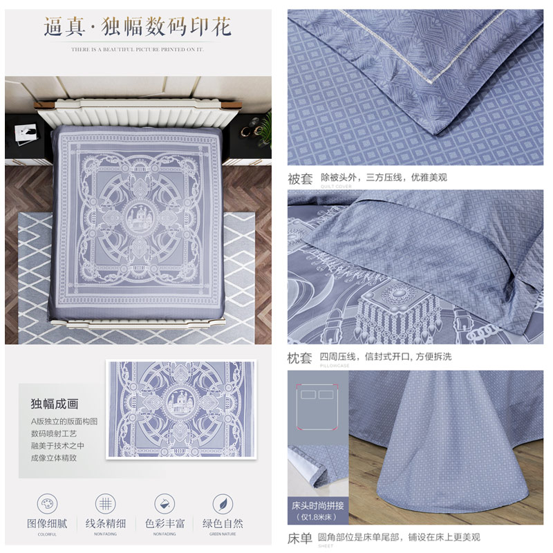昆士兰 床单四件套(被套1件床单1件枕套2件)(适合1.5米床)【60支长绒棉/蓝】 |