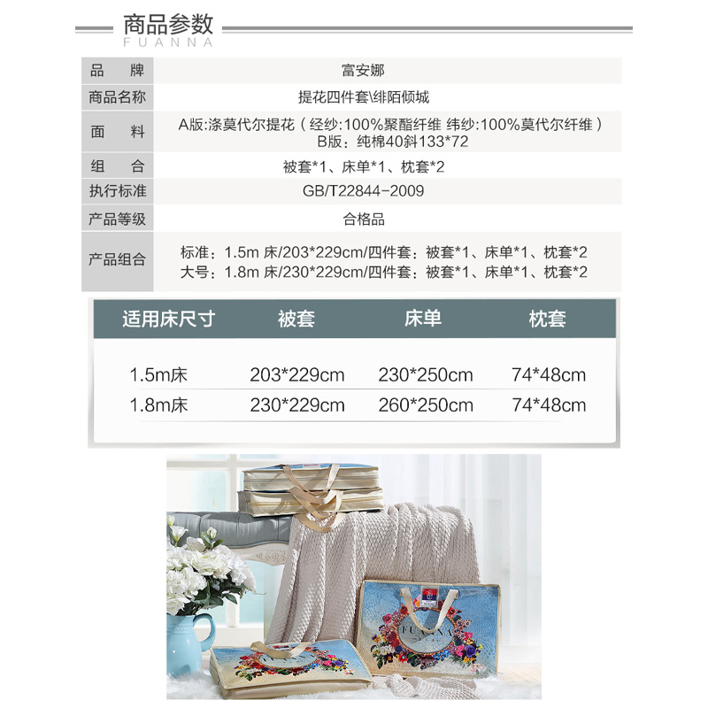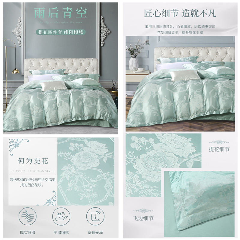 绯陌倾城 床单四件套(被套1件床单1件枕套2件)(适合1.8米床)【A版:涤莫代尔提花;B版:纯棉/绿】 |