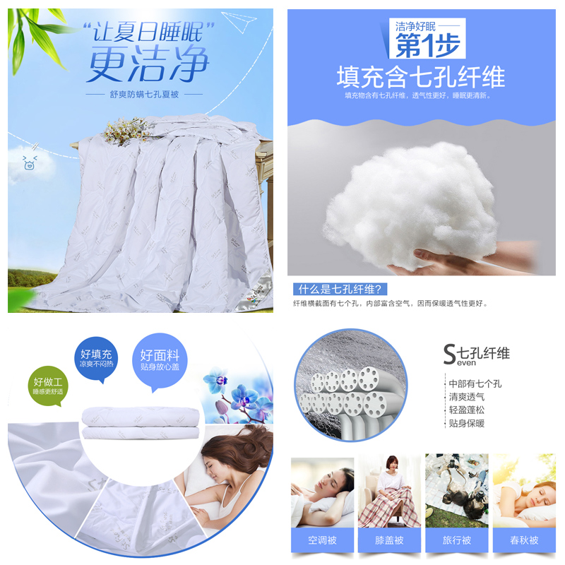 舒爽防螨七孔夏被(夏被1件)(适合1.5米床)【面料:聚酯纤维;填充:聚酯纤维/白】 |