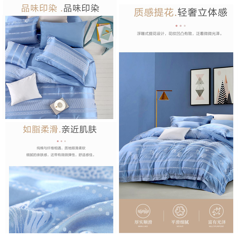 洋畔之旅 床单四件套(被套1件床单1件枕套2件)(适合1.5米床)【A版:涤棉提花;B版:纯棉/蓝】 |