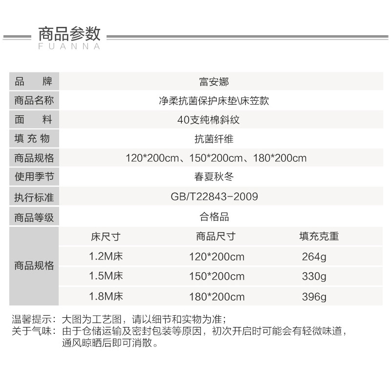 床笠款 净柔抗菌保护床垫 (床垫1件)(适合1.2米床)【面料:纯棉;填充:抗菌纤维/图片色】 |