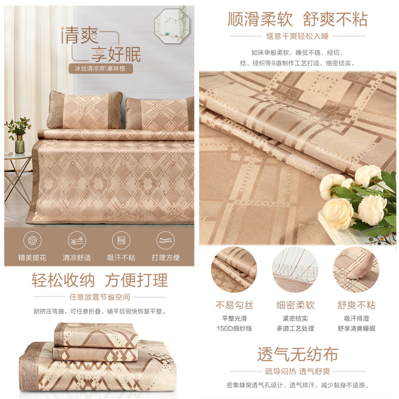 塞林格 冰丝清凉席三件套(凉席1件枕套2件)(适合1.8米床)【聚酯纤维+纤维素材料/咖啡】 |