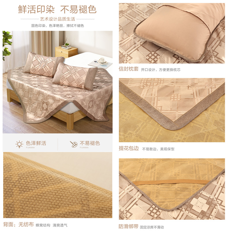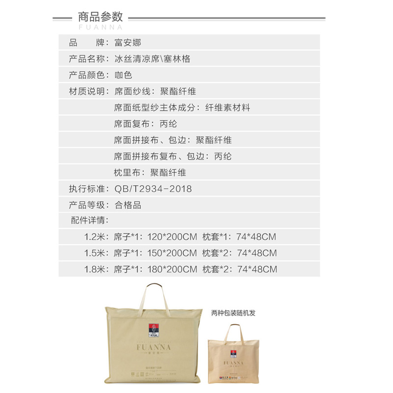 塞林格 冰丝清凉席两件套(凉席1件枕套1件)(适合1.2米床)【聚酯纤维+纤维素材料/咖啡】 |