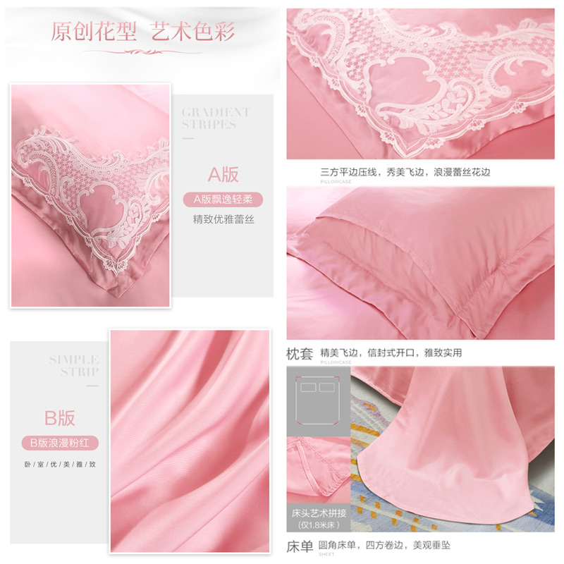 安佩尼 床单四件套(被套1件床单1件枕套2件)(适合1.8米床)【莱赛尔纤维/粉】 |