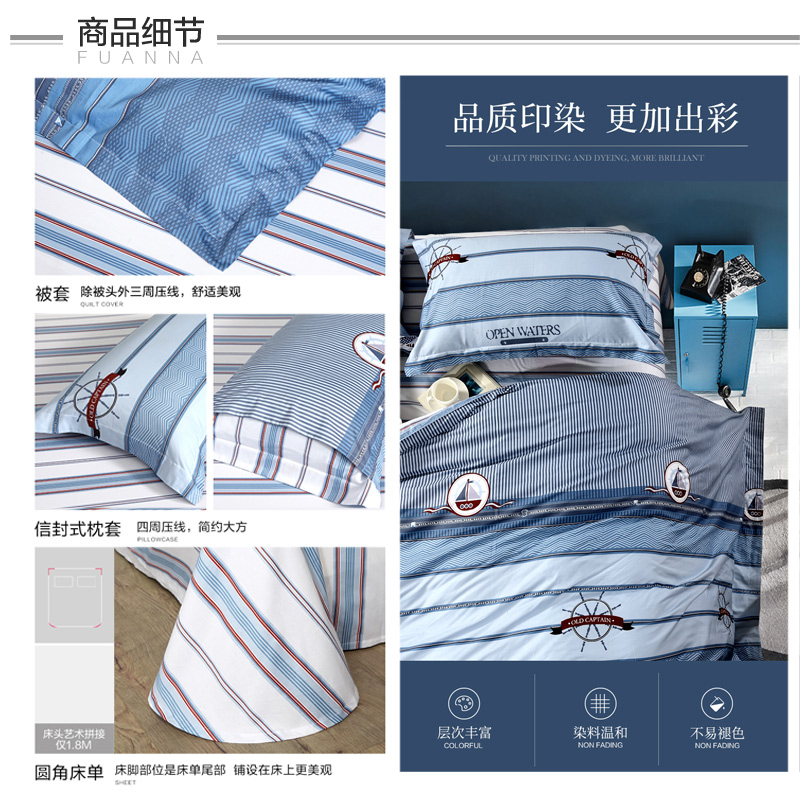 梦幻海洋号 床单四件套(被套1件床单1件枕套2件)(适合1.8米床)【纯棉/蓝】 |