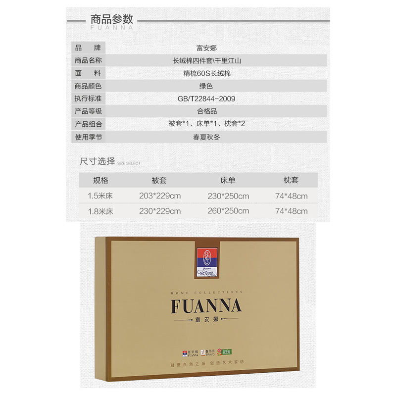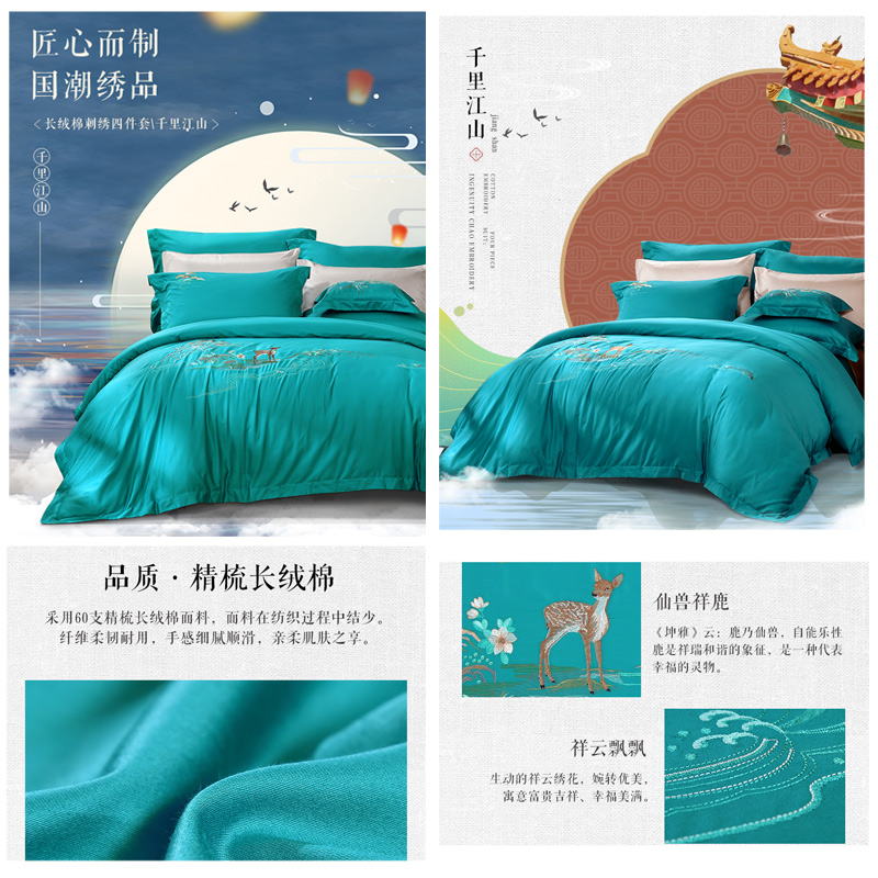 千里江山 床单四件套(被套1件床单1件枕套2件)(适合1.5米床)【精梳棉/绿】 |