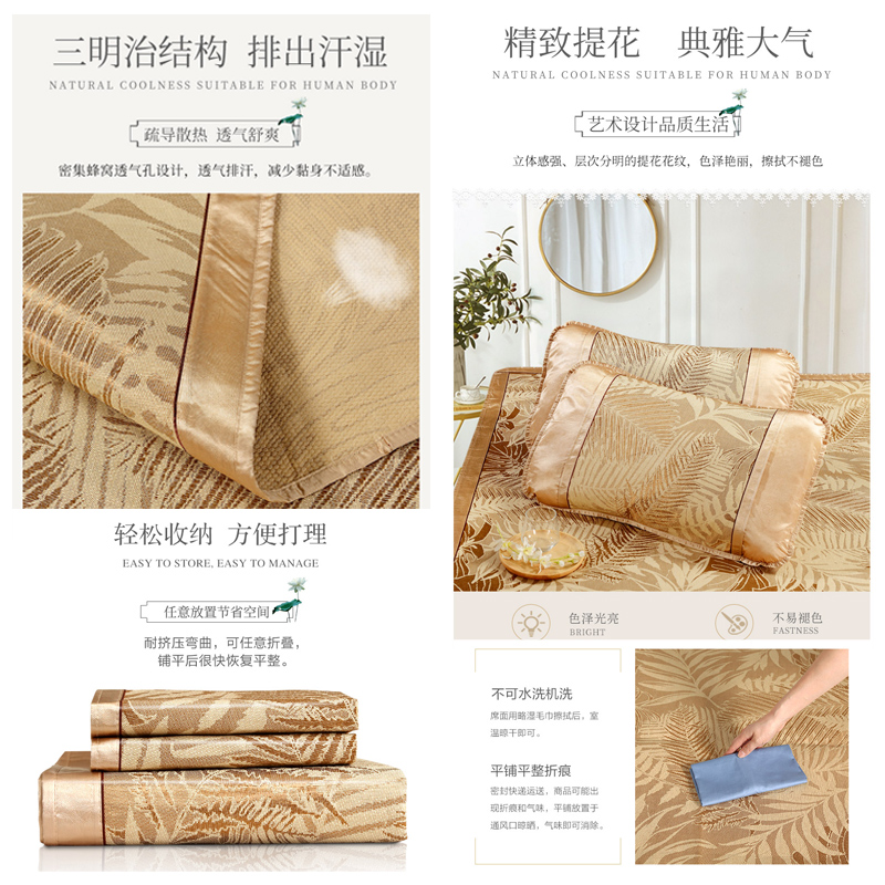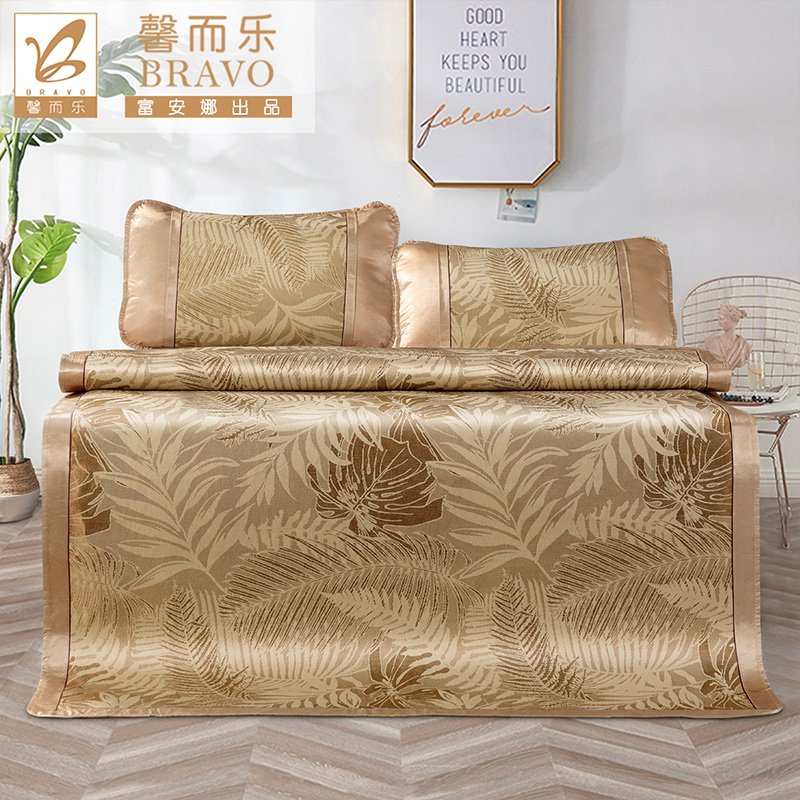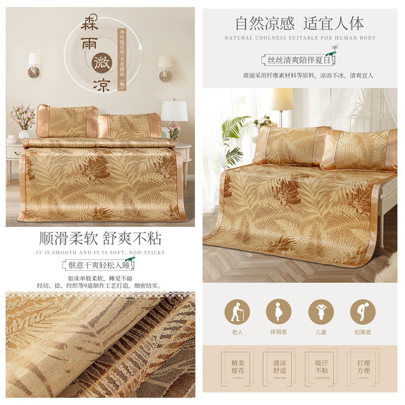 杏花微雨 冰丝提花席三件套(凉席1件枕套2件)(适合1.8米床)【聚酯纤维+纤维素材了/咖】 |