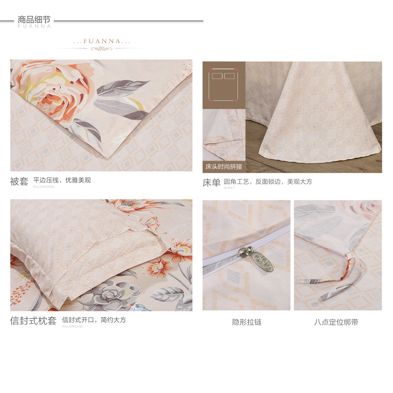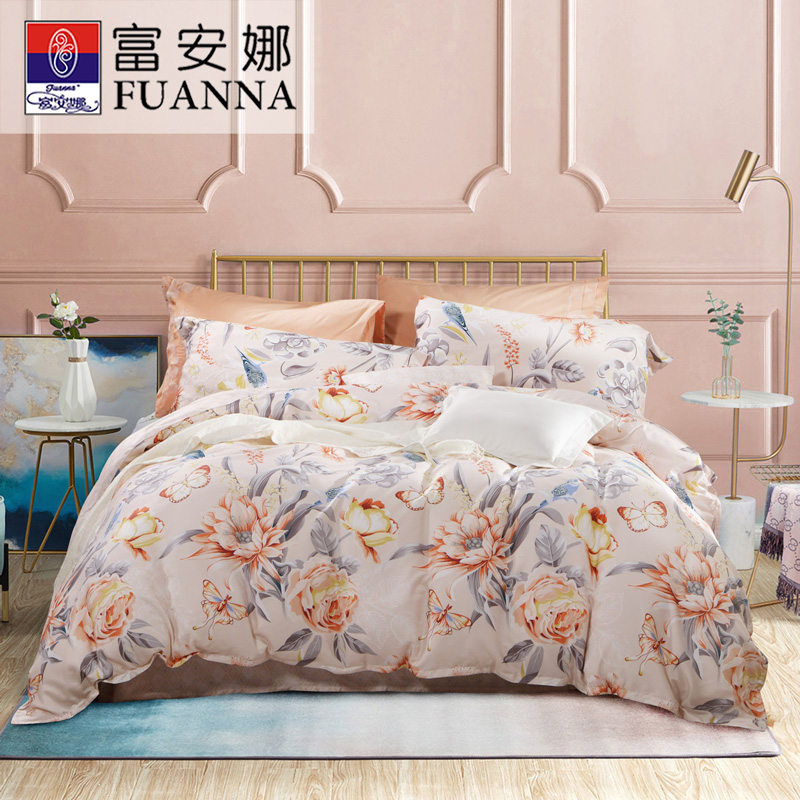蝶梦花溪 床单三件套(被套1件床单1件枕套1件)(适合1.2米床)【纯棉/橙色】 |