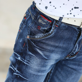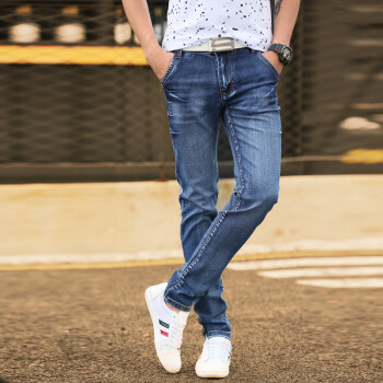 牛仔裤男修身春夏季韩版休闲裤男弹力小脚裤子男士时尚水洗牛仔青少年运动长裤男装潮 005浅蓝 30-2尺3 |