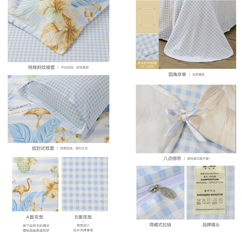 丛林夏梦 床单三件套(被套1件床单1件枕套1件)(适合1.2米床)【纯棉/蓝】 |