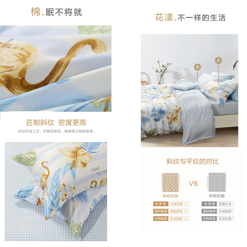 丛林夏梦 床单四件套(被套1件床单1件枕套2件)(适合1.5米床)【纯棉/蓝】 |