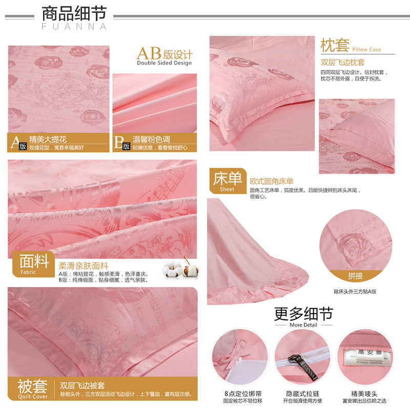 献给爱丽丝 床单四件套(被套1件床单1件枕套2件)(适合1.5米床)【棉粘提花/粉】 |