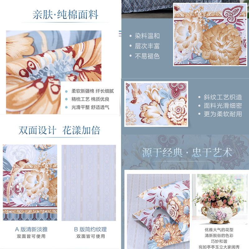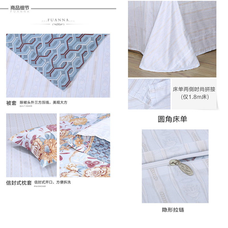 一眼芳华 床单四件套(被套1件床单1件枕套2件)(适合1.5米床)【纯棉/蓝】 |
