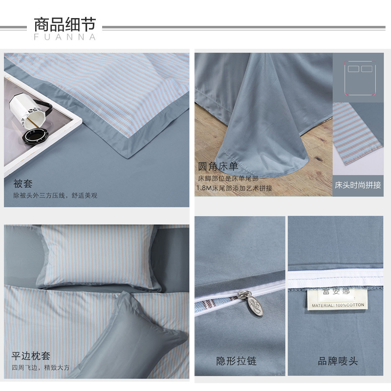 凯伦特 床单四件套(被套1件床单1件枕套2件)(适合1.8米床)【40支斜纹133*72/蓝】 |