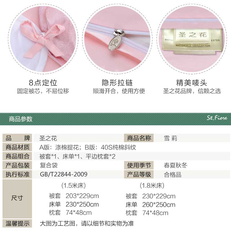 雪莉 床单四件套(被套1件床单1件枕套2件)(适合1.5米床)【A版涤棉提花;B版纯棉/粉】 |
