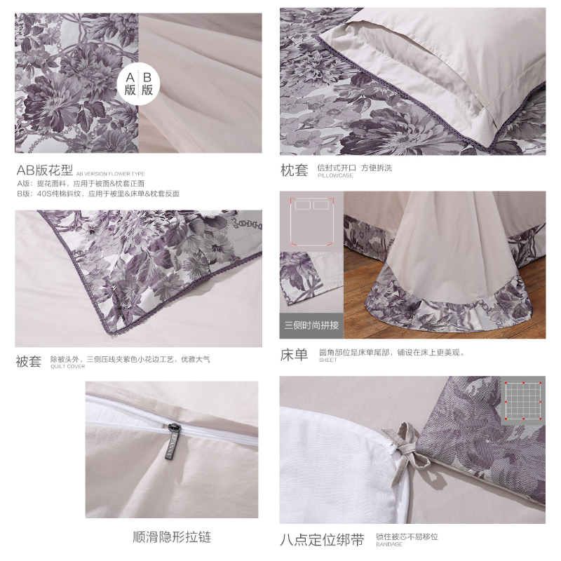 莫佳娜 床单四件套(被套1件床单1件枕套2件)(适合1.8米床)【A版:涤粘提花;B版:纯棉/灰】 |