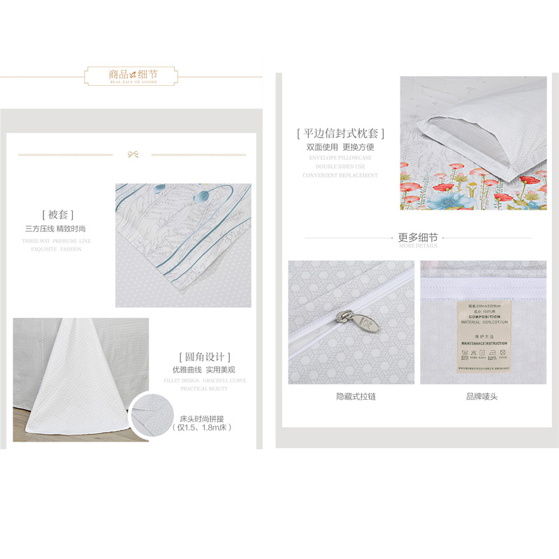 淡妆伊人 床单四件套(被套1件床单1件枕套2件)(适合1.5米床)【40支纯棉/白】 |