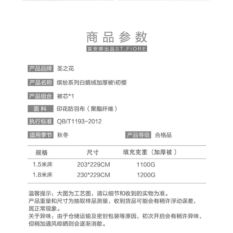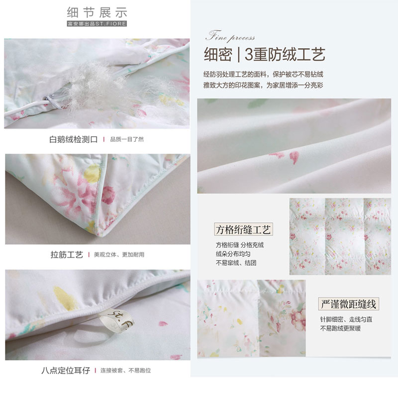 缤纷系列白鹅绒加厚被初樱(被芯1件)(适合1.5米床)【全涤磨毛防羽印花/浅绿】 |