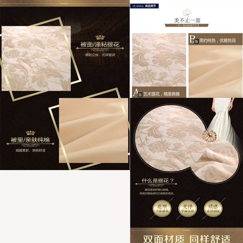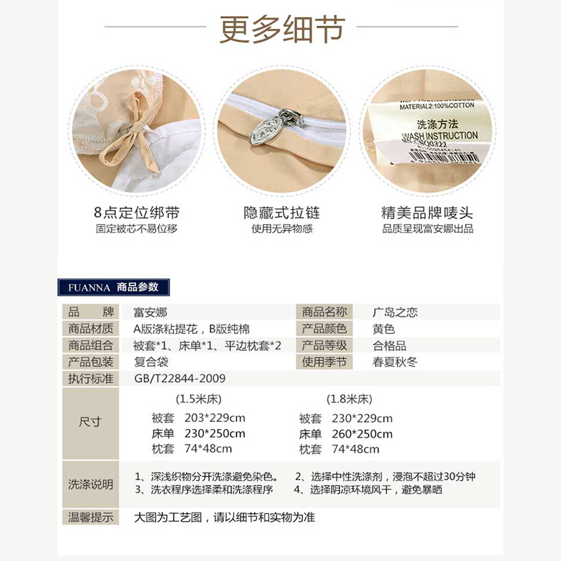 广岛之恋 床单四件套(被套1件 床单1件 枕套2件)(适合1.8米床)【面料1:涤粘提花;面料2纯棉/黄】 |