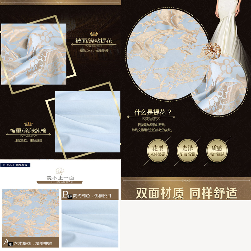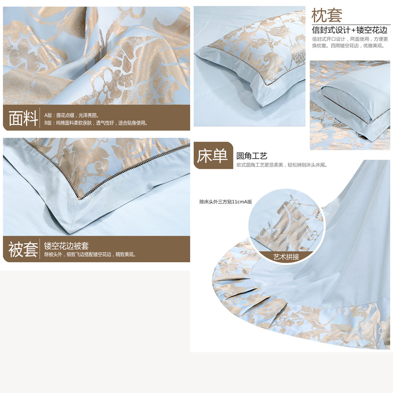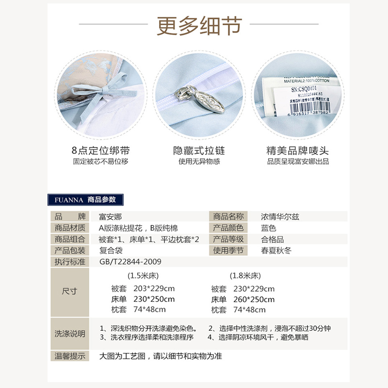 浓情华尔兹 床单四件套(被套1件 床单1件 枕套2件)(适合1.5米床)【涤粘提花/蓝】 |