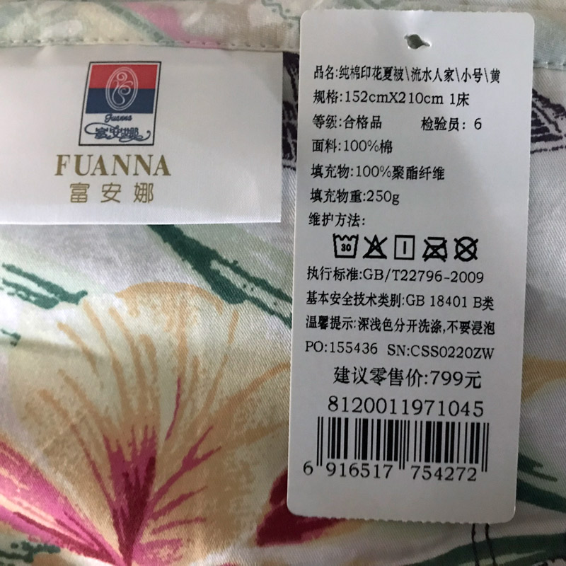 流水人家 纯棉印花夏被(夏被一件)(适合1.2米床)【40支斜纹128*68/黄】 |