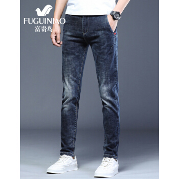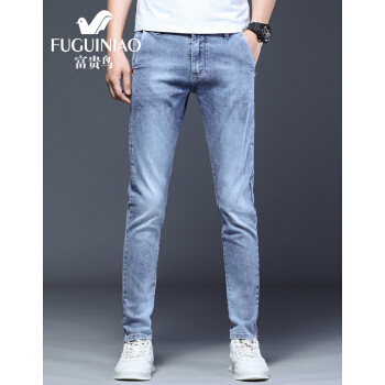 富贵鸟牛仔裤男夏季新品韩版潮流修身小脚裤男士弹力休闲裤子男裤 8605浅蓝 30 |