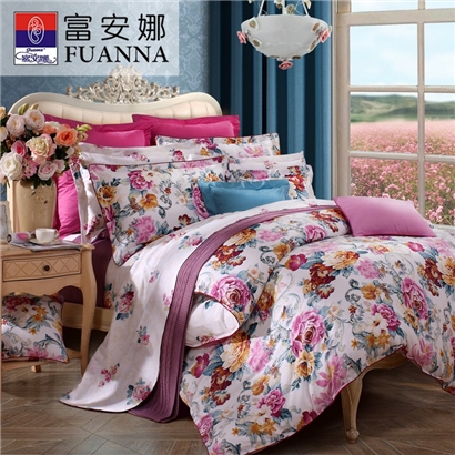 花韵倾城印花四件套(被套一件床单一件枕套两件)(适用1.8米床)【纯棉/紫】 |