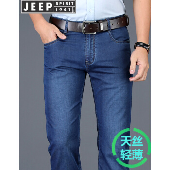 吉普JEEP牛仔裤男直筒薄款裤子男夏季新款商务休闲男装长裤微弹力男裤 2180#薄款 蓝色 33(腰围2尺5) |
