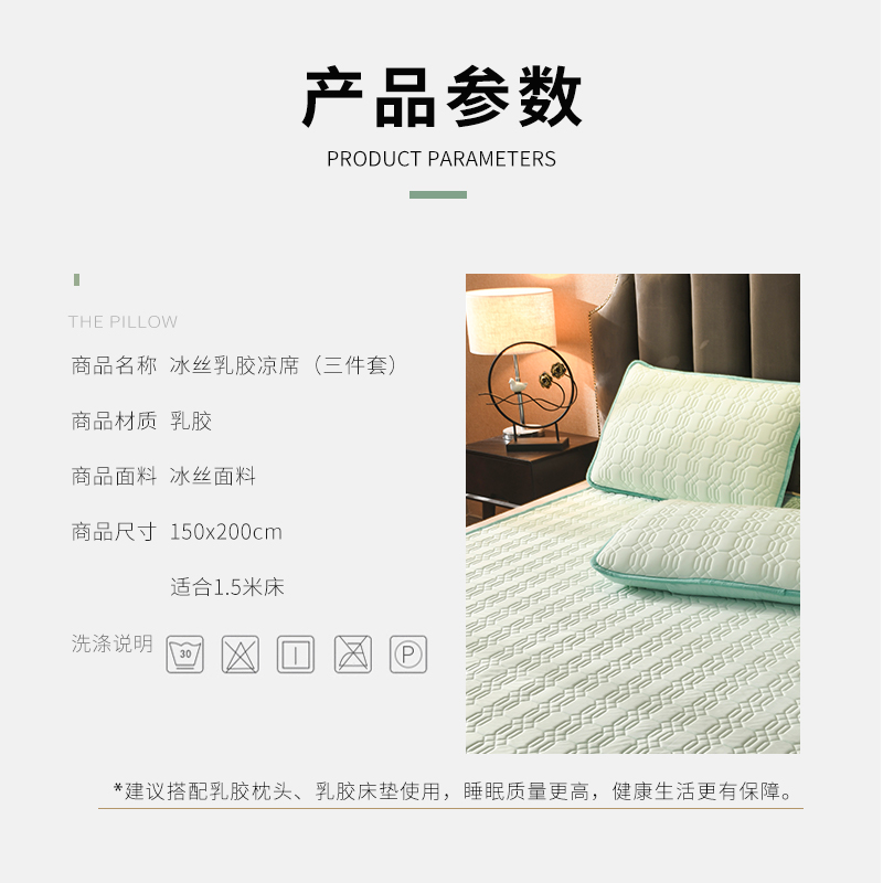 TAIHI泰嗨天然乳胶冰丝凉席三件套薄荷绿(适合1.5米床)【天然乳胶/薄荷绿】 |