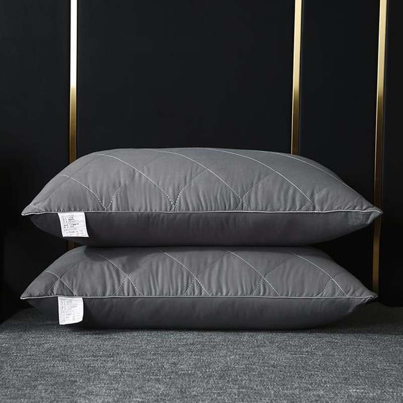全棉大方格枕芯羽丝绒枕头【面料全棉填充羽丝绒/全棉灰色】 |