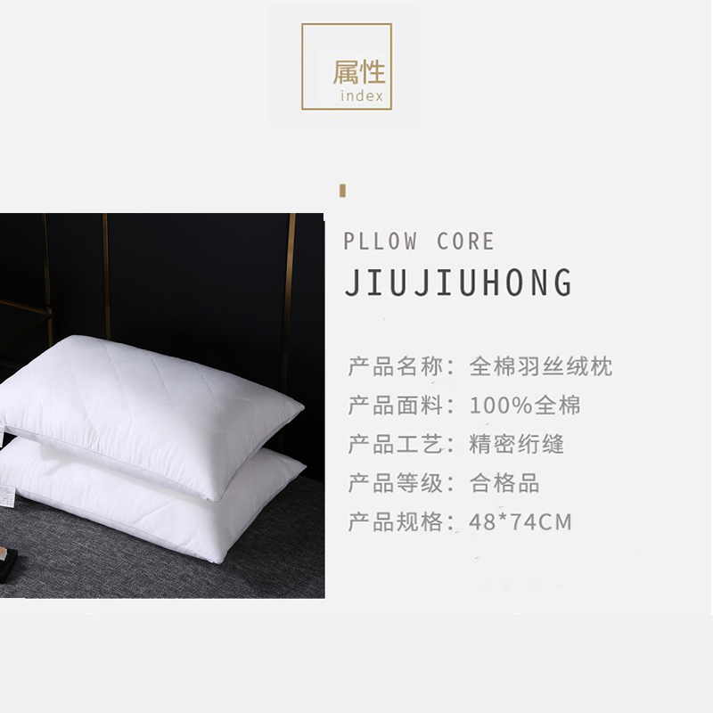 全棉大方格枕芯羽丝绒枕头【面料全棉填充羽丝绒/全棉枕白色】 |