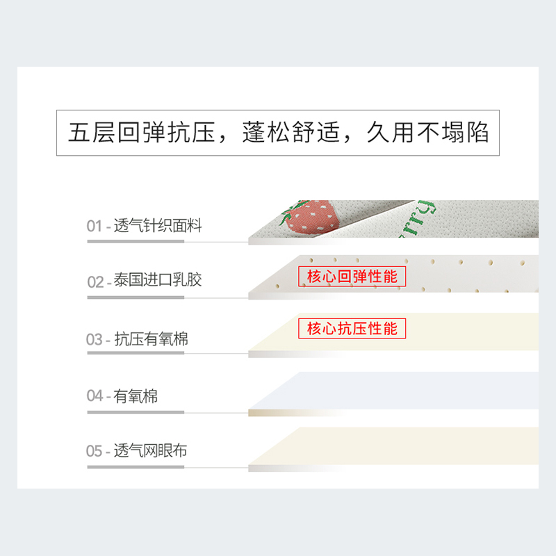 【进口乳胶 不易塌陷】高品质针织乳胶三明治床垫【面料针织棉填充乳胶+硬质棉/乳胶草莓】 |