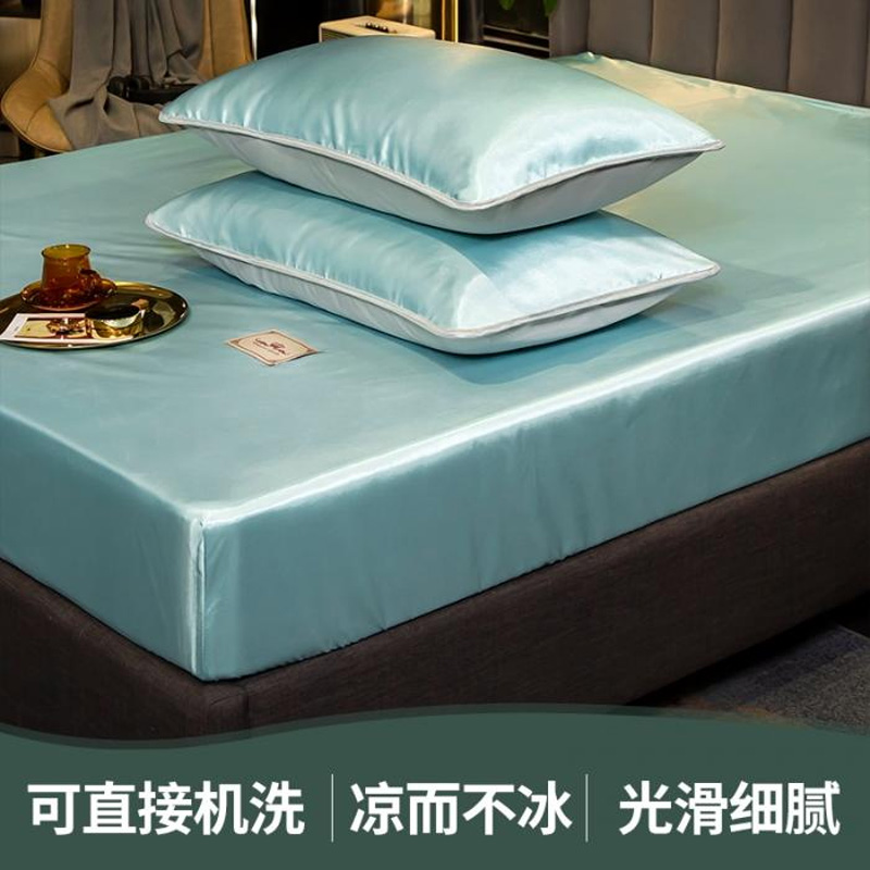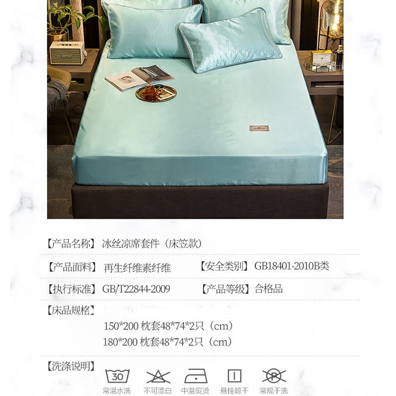 【柔软清爽 凉而不冰】无印床笠款冰丝席三件套【冰丝面料(聚酯纤维)/贵族-水绿】 |