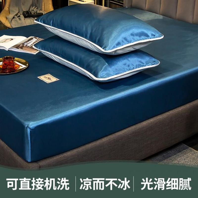【柔软清爽 凉而不冰】无印床笠款冰丝席三件套【冰丝面料(聚酯纤维)/贵族-蓝】 |