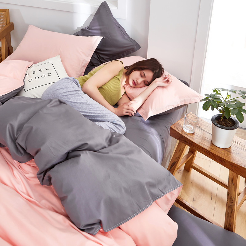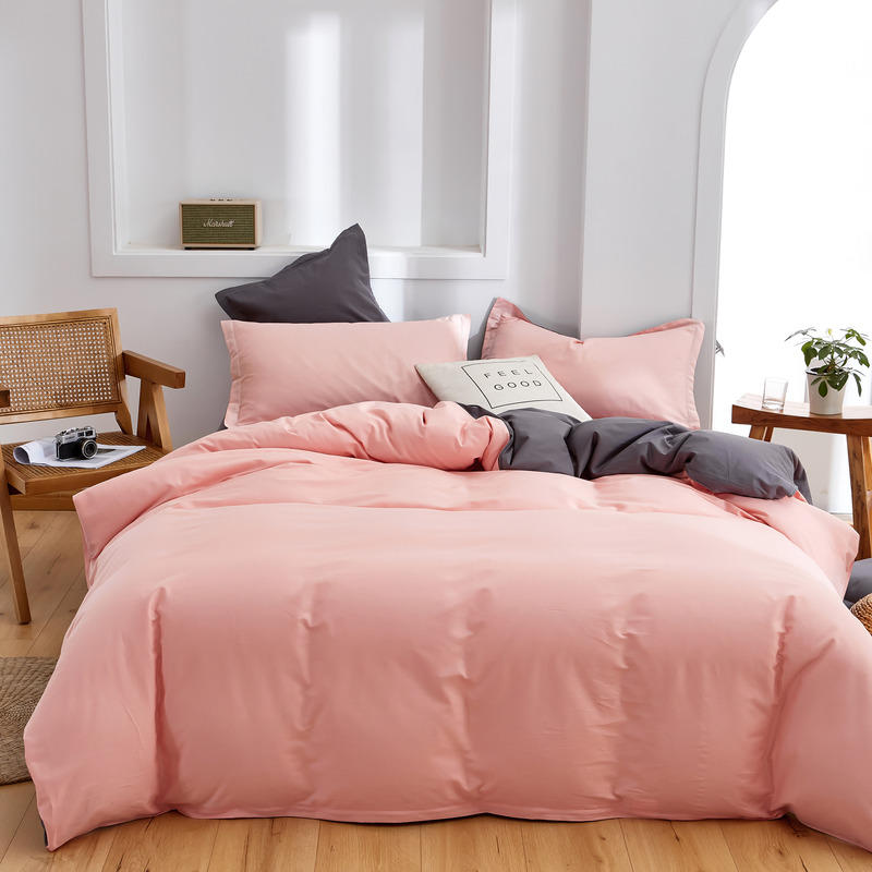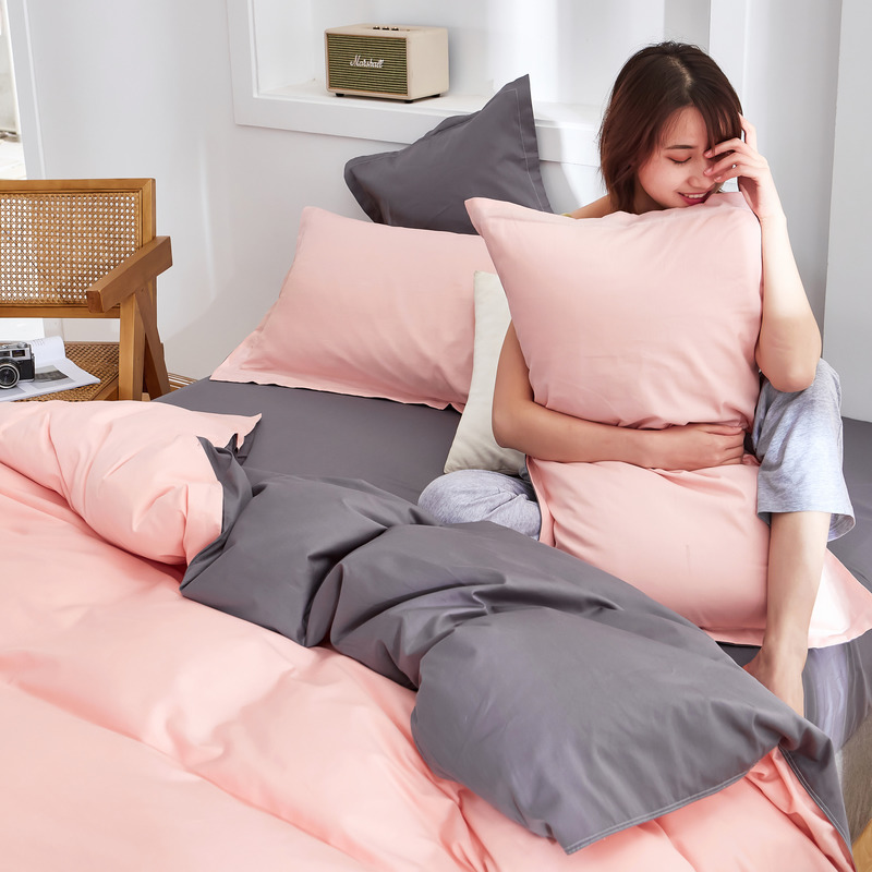 极简时尚双拼全棉喷气四件套【全棉/粉+深灰】 |
