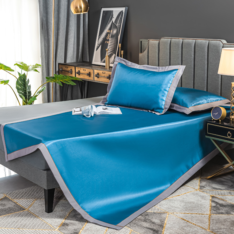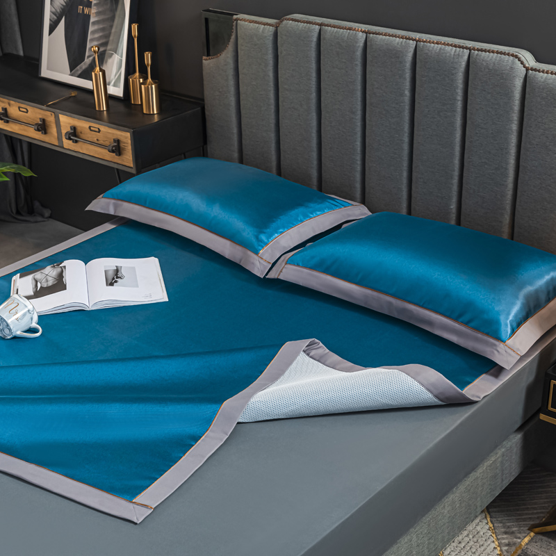 轻奢600D冰丝加厚三明治凉席三件套【聚酯纤维/三明治冰丝深蓝】 |