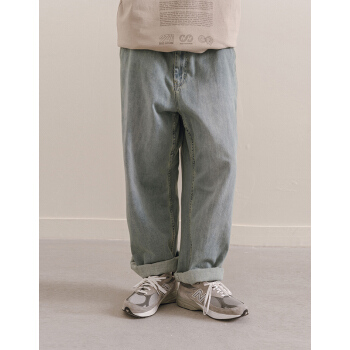NOTHOMME潮牌春季矿工洗水浅色基本款牛仔裤男士宽松直筒休闲长裤 水洗蓝 L |