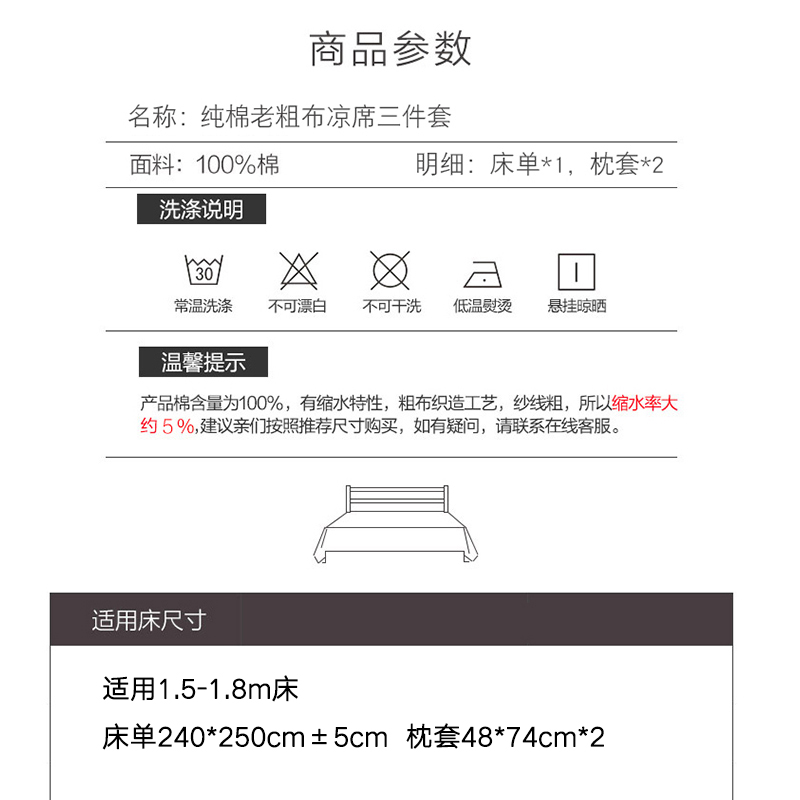 全棉麻空调软凉席老粗布床单三件套【棉/几何旋律】 |