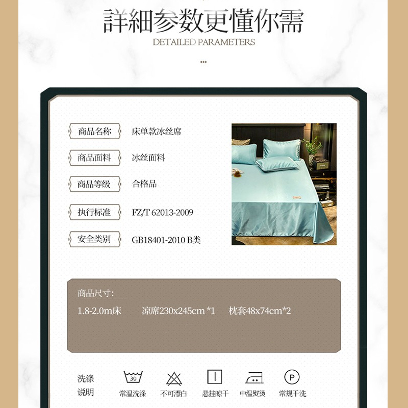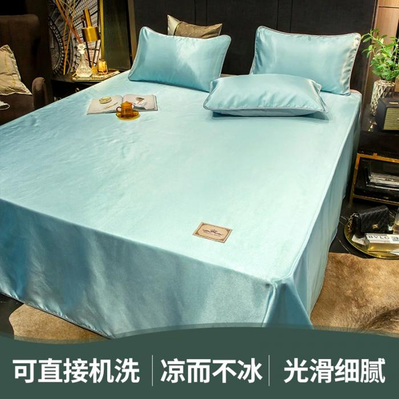 无印纯色床单款冰丝凉席三件套可机洗【冰丝面料(聚酯纤维)/贵族-水绿】 |