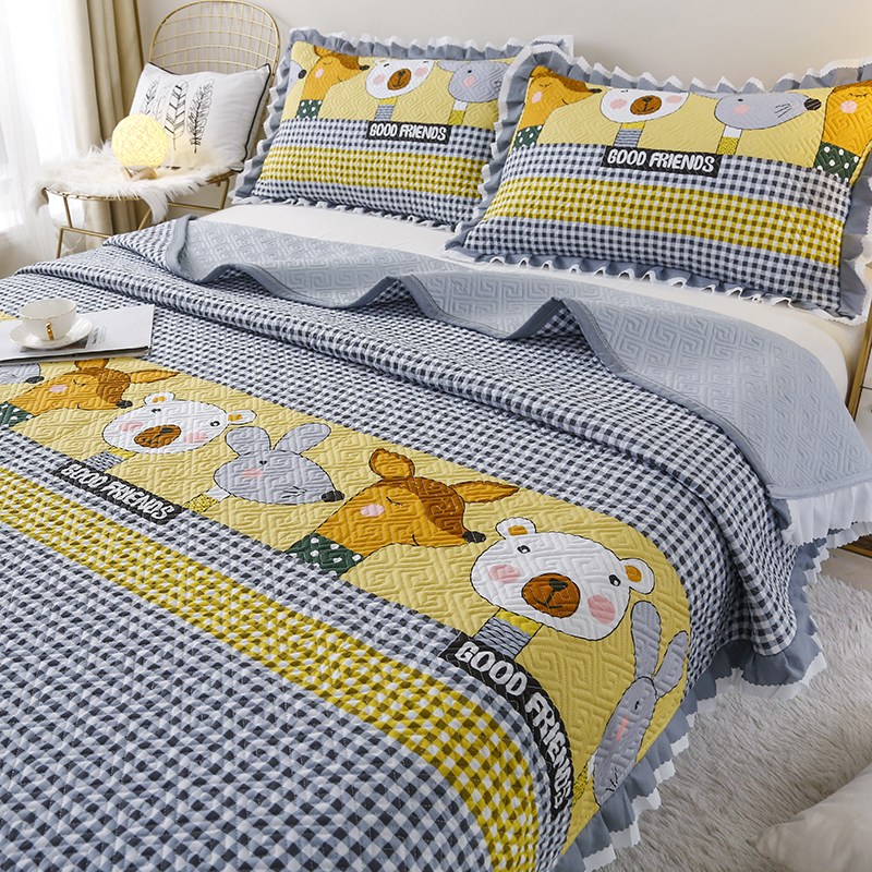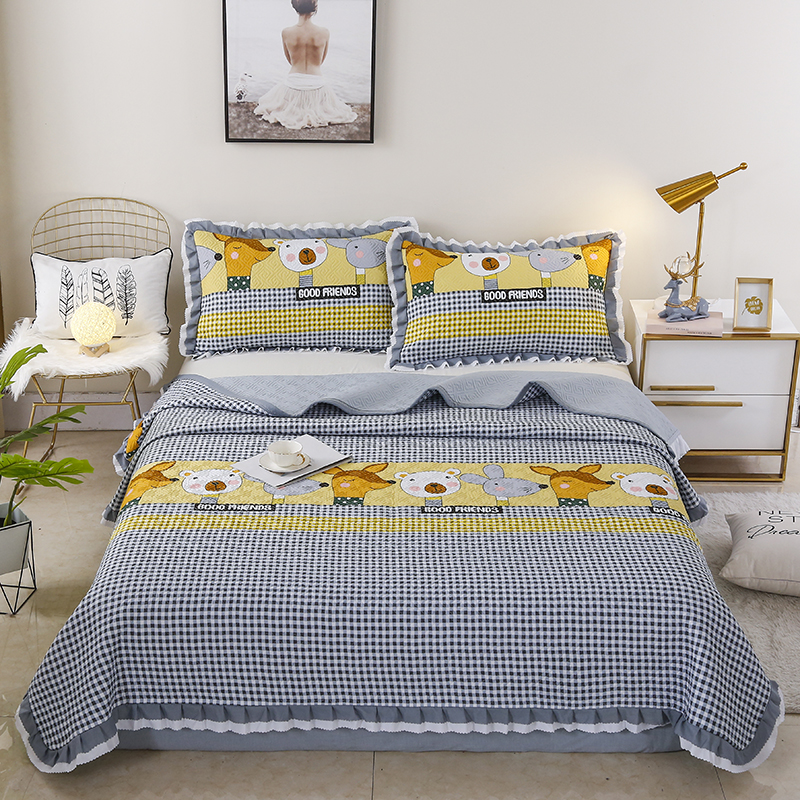 【三层复合】全棉夹棉绗缝床盖三件套【全棉/小可爱灰】 |