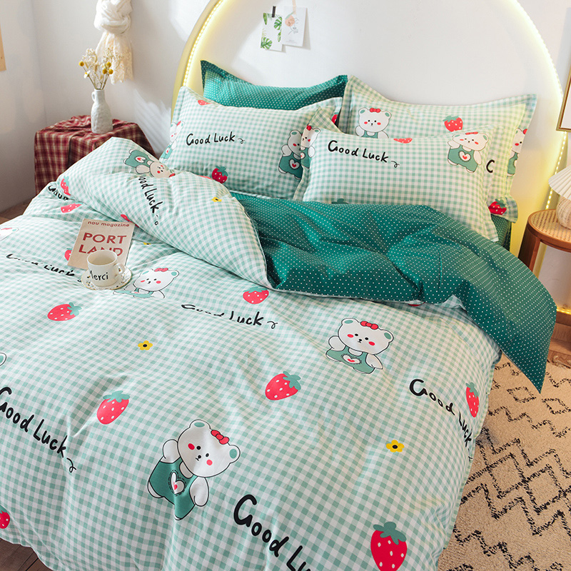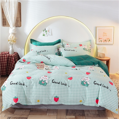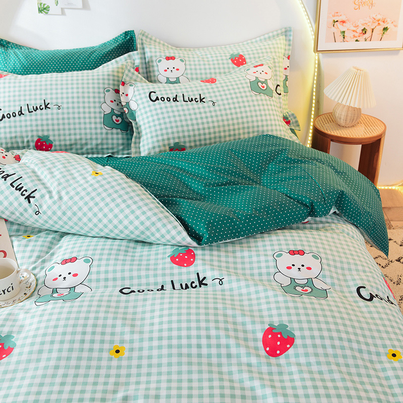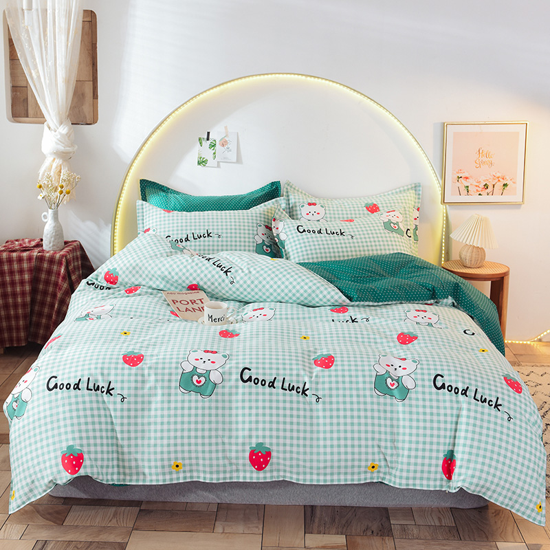 ins清新风AB版简约全棉四件套【全棉/草莓熊】 |