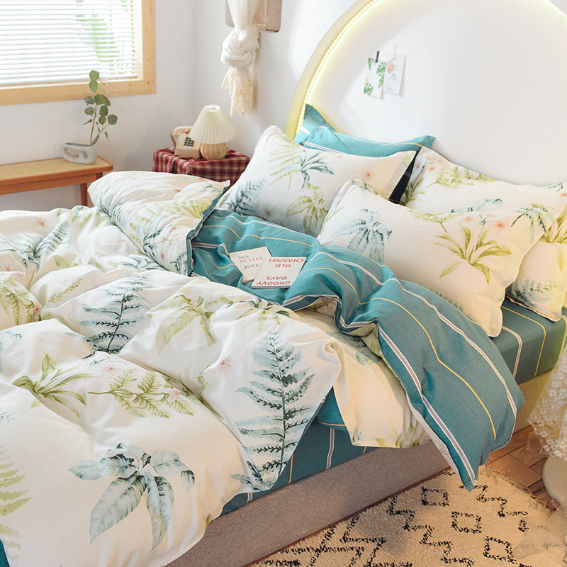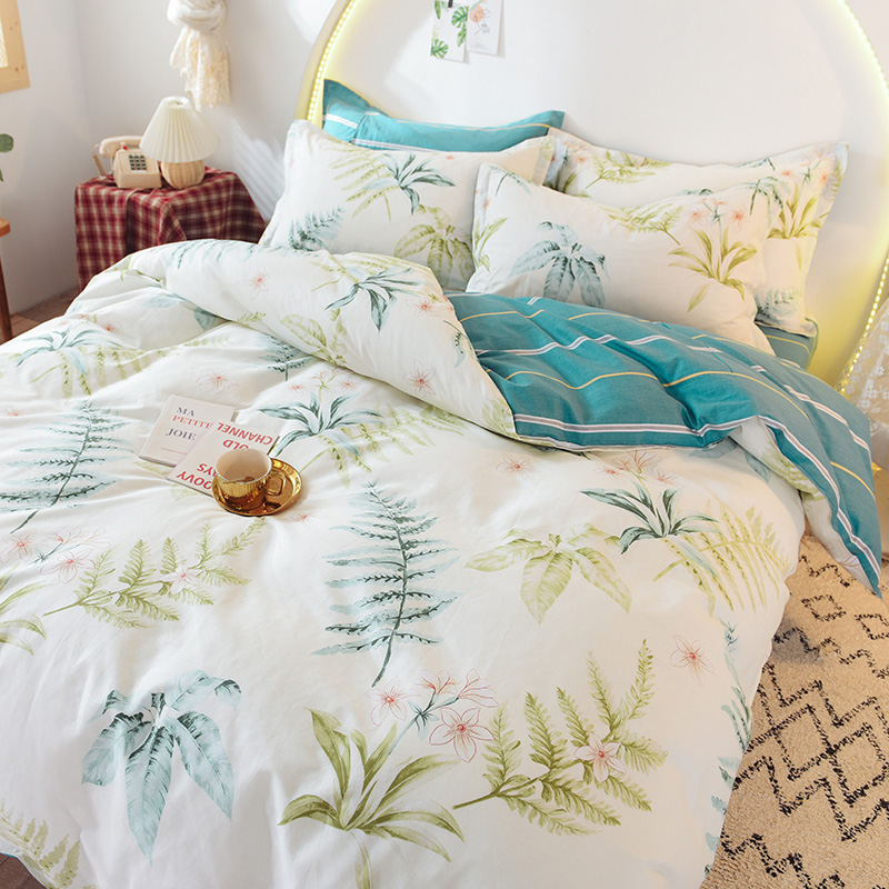 ins清新风AB版简约全棉四件套【全棉/花叶情梦】 |