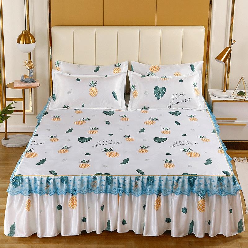 印花蕾丝床裙款冰丝席凉席三件套【冰丝(聚酯纤维)/甜蜜菠萝】 |