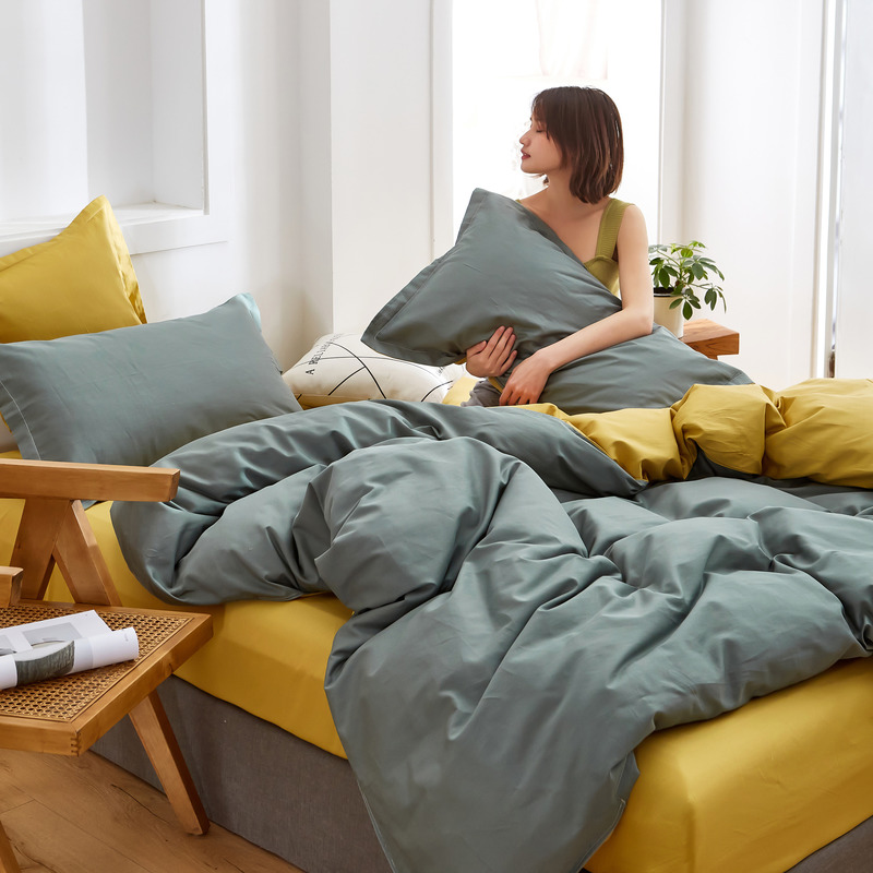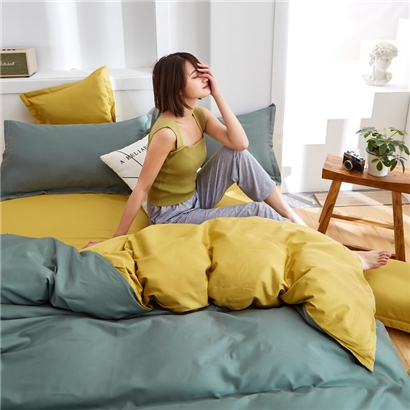 极简时尚双拼全棉喷气四件套【全棉/橄榄绿+姜黄】 |