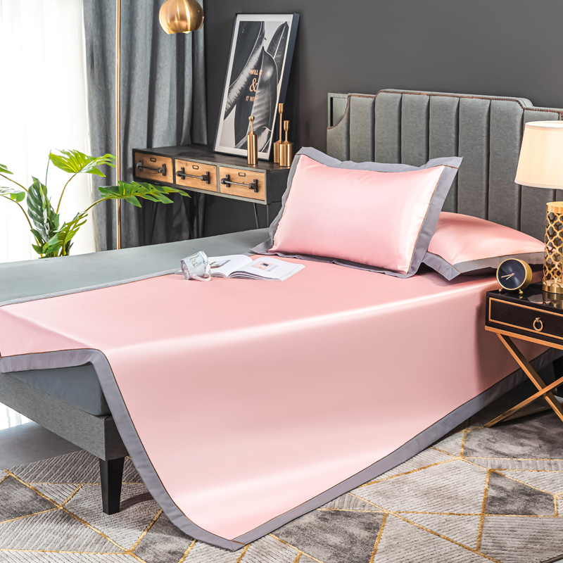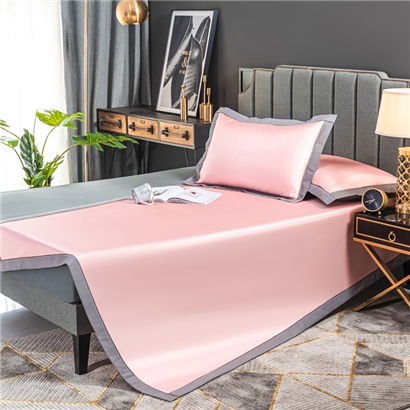 轻奢600D冰丝加厚三明治凉席三件套【聚酯纤维/三明治冰丝粉玉】 |
