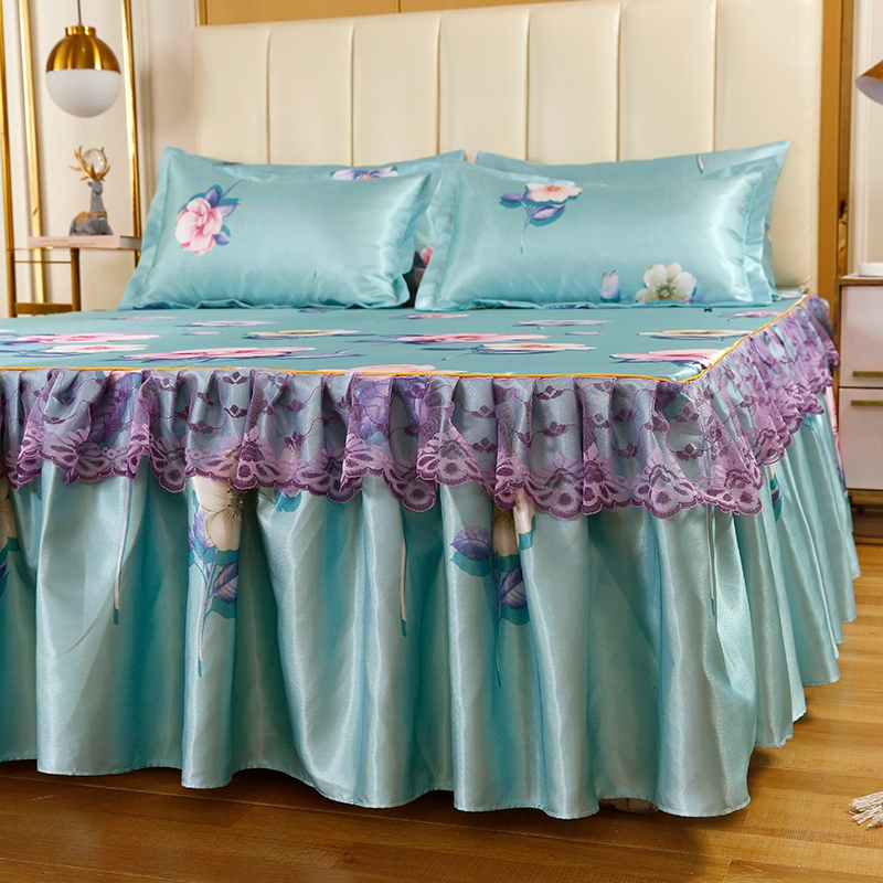 印花蕾丝床裙款冰丝席凉席三件套【冰丝(聚酯纤维)/梦妆花颜】 |