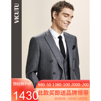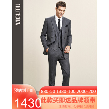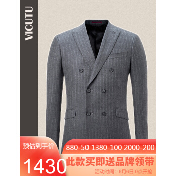 威可多VICUTU男士套装西服上衣羊毛混纺灰色双排扣商务西装男VRS18312949 中灰 175/96B |